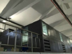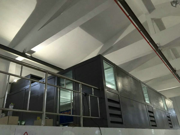 杭州餘杭水務有限公司仁和水廠位於仁和鎮高新大道,本次委托我方解決的為脫水(shuǐ)機組車間的噪聲問題。車間現有3台脫水機組(zǔ),距離機組1m處測得噪聲值95.4dB(A)。根據現場布置,擬采取安裝整體隔聲罩的措施。罩內通風換氣降溫由罩頂3套DZT-3-5C型軸流風機(Q=7500m3/h,P=177Pa,n=1450r/min,N=0.75kW)配帶(dài)消聲器(qì)來完成,外部新鮮空氣由隔聲罩側麵底部開口進入,並(bìng)加裝進(jìn)風消聲器。內部采用防爆燈(dēng)具照明。