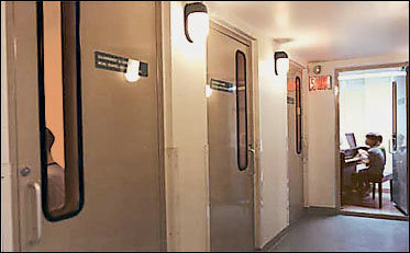 3.外包隔音門材料。在普通木門扇外麵包裹一(yī)層人造革,人造革(gé)內填塞岩棉,並將通長的人(rén)造革壓條用泡(pào)釘釘牢,四周縫(féng)隙用海綿橡皮條粘牢封嚴。